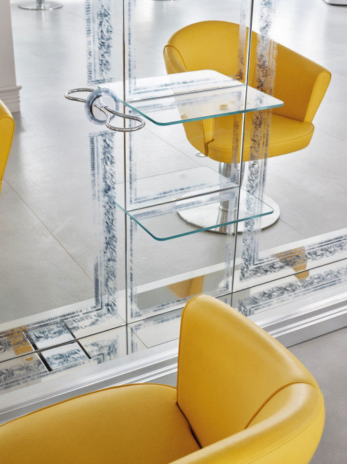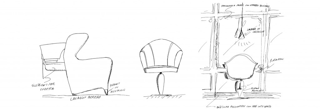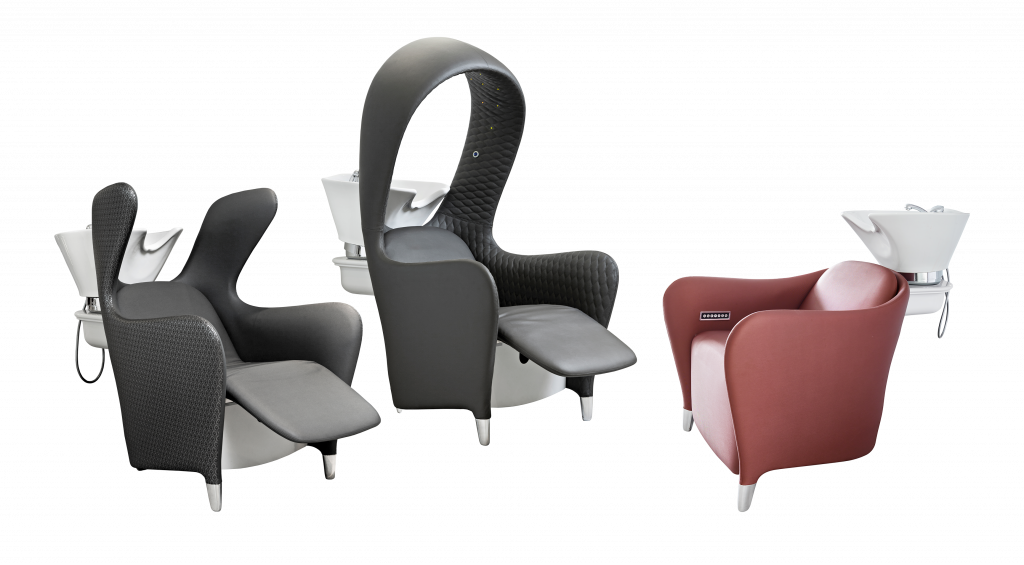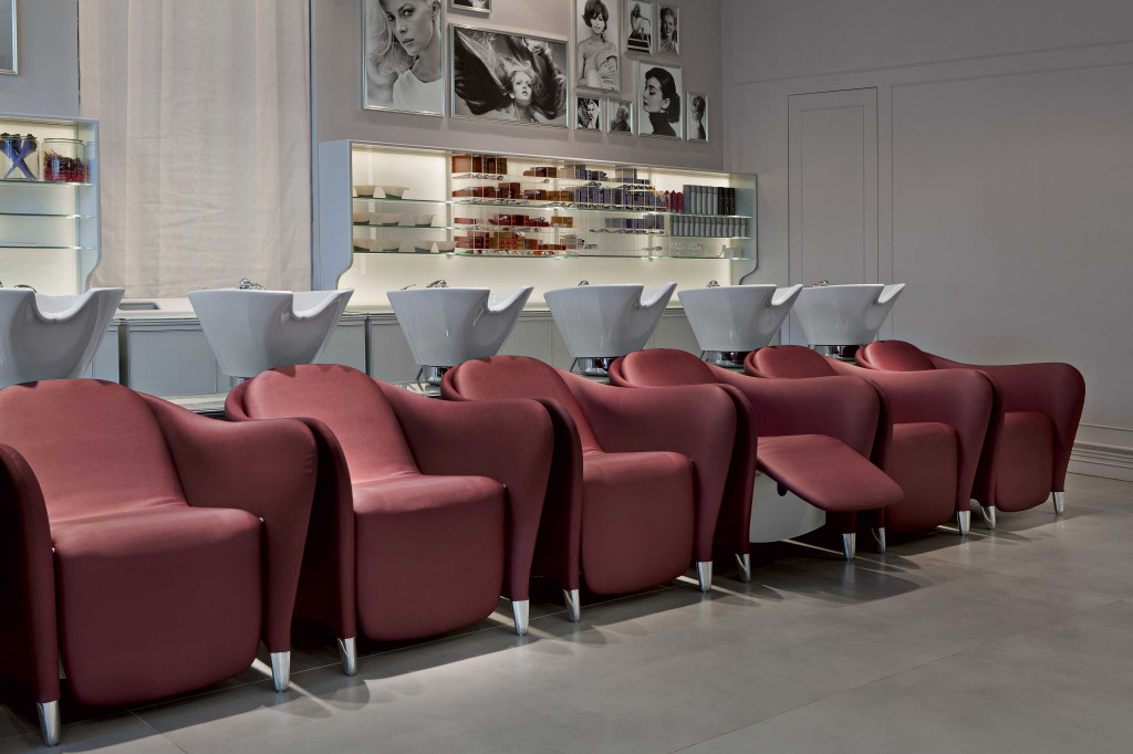 The sofa design has three different sittings which could be freely combined. Developed from the same concept, the hair washing chairs were inspired by classics such as Carrosse and Bergère sofas, and they can also be bonded into three different arangements. New shelves and working tables codes were included into this collection so that seats can be better adapted to new spaces while creating new layouts. The broad color range allows an even stronger personalization of this product so that it can answer all the contemporary project needs.