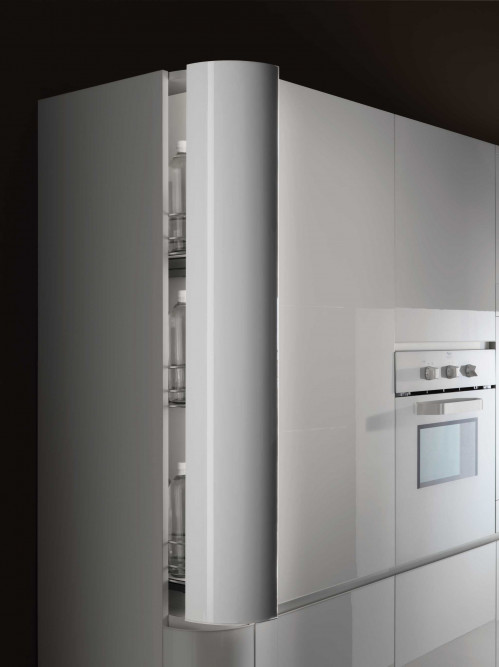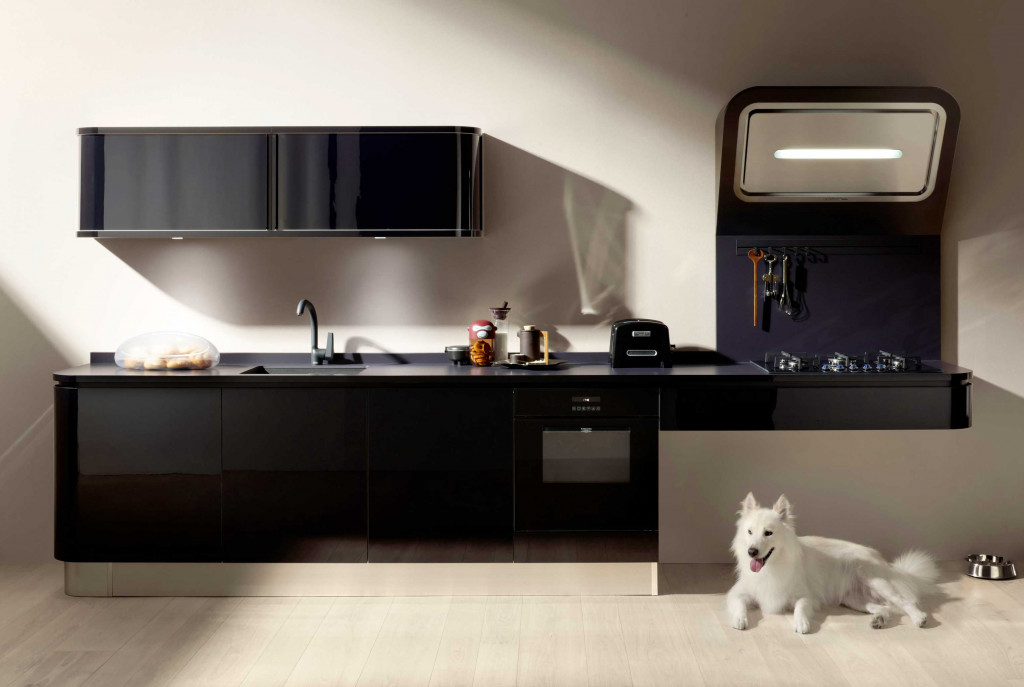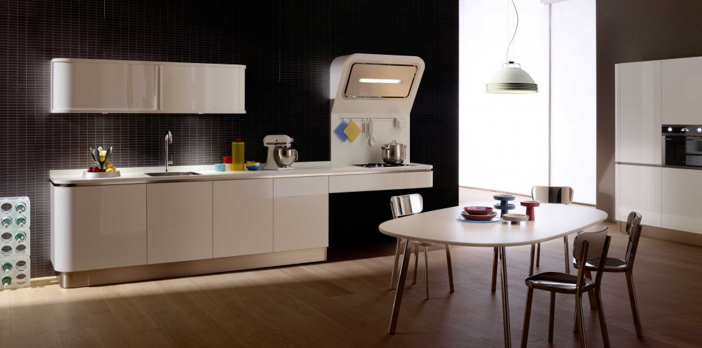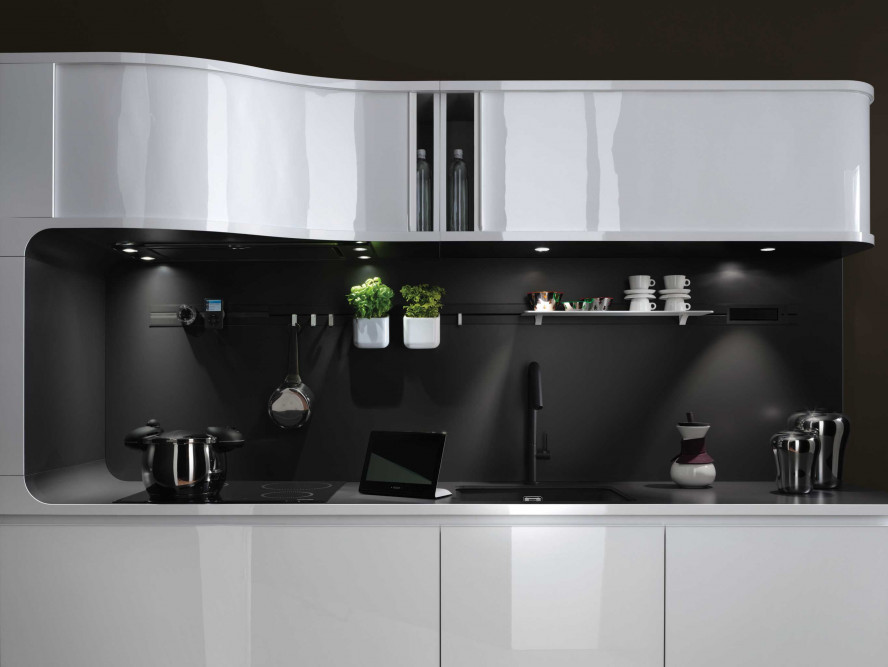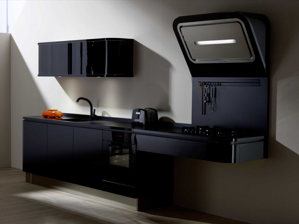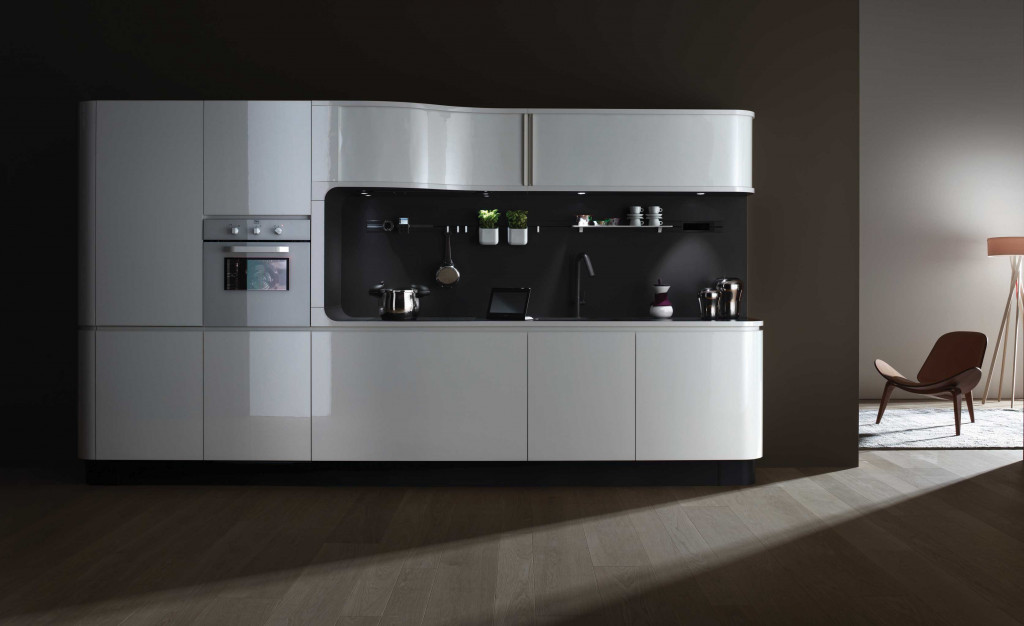 The kitchen as central hub of the environment. Self-carrying, technological and functional object around which one may share a view of the space in which new domestic rituals will take place. An icon which reinvents living spaces.