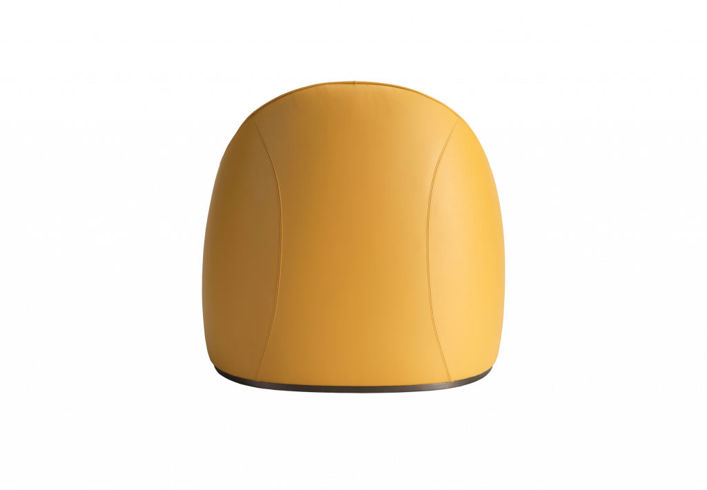 The design of the armchair takes place by subtracting material from a full spheroidal shape, as if a large spoon created a seat inside a yeasted cake.