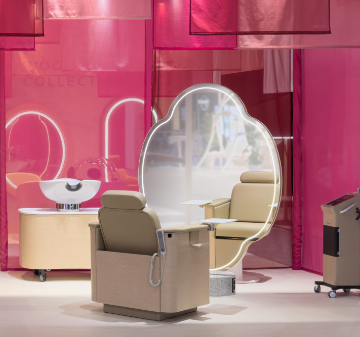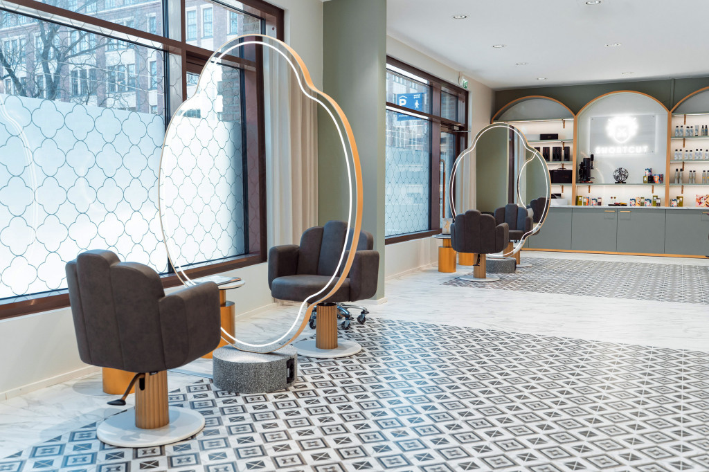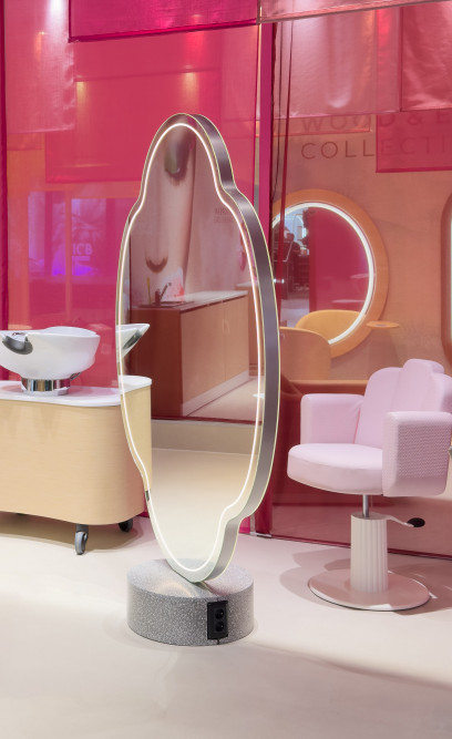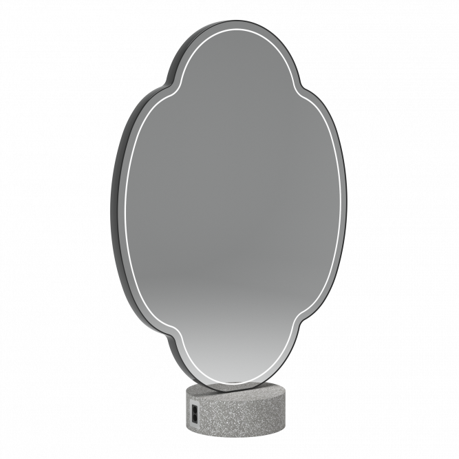 The new central mirror has a design inspired by the window decorations of Venetian palaces, a four-petalled rosette.